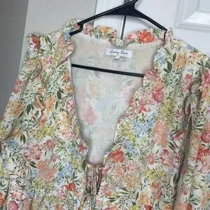 Emory Park Floral Ruffle Tie Front Cropped Blouse Large