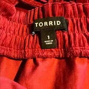 Chic dark red corduroy pinafore. Adjustable straps and front pocket.