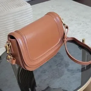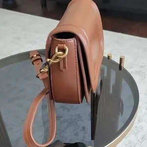 Elegant Zara crossbody bag in tan leather. Features a sleek design with an adjustable strap. Perfect for any occasion.