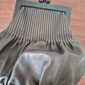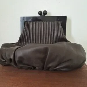 Features tonal hardware, leather lining, and a kiss-lock closure at top