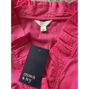 Crown & Ivy Womens L NWT Hot Pink Linen Blend Sleeveless Ruffle Neck Blouse