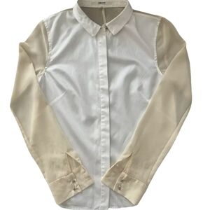 J Brand White Cotton Sheer Contrast Sleeve Blouse XS