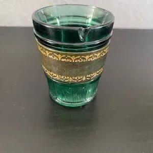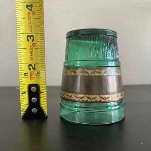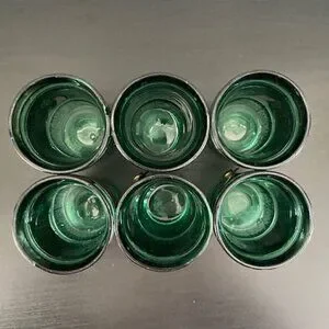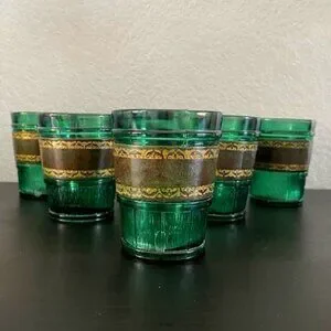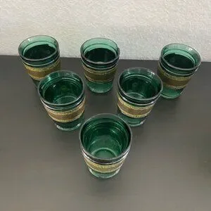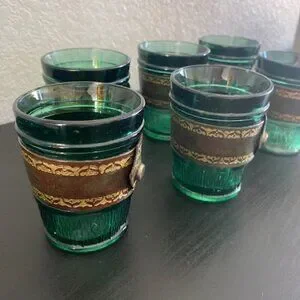 RARE! Vintage 60s MCM Emerald Green Leather Banded Tumbler Glasses Set of 6