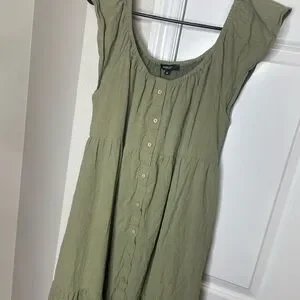 Wishlist Sage Green Cotton Button Front Midi Dress M