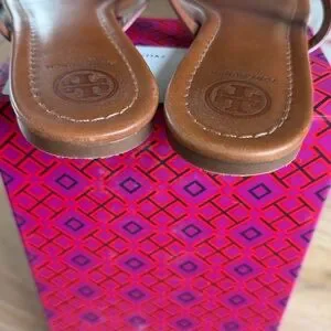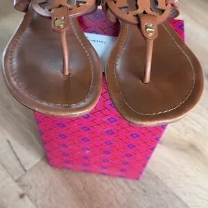 Tory Burch Miller Leather Sandals Vintage Vachetta 8.5 Tan Cognac Flip flops