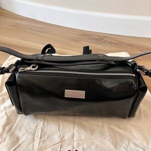 Very trendy bag from Aest Studios. I bought the crossbody strap separately but would like to sell together. The bag is very cute but realized it is not my style! I've worn it about five times. Very minimal wear on the bag from what I can tell! I do not have the original box because it was enormous and my closet space is limited. The dust bag that came with it is a cute tote bag with the brand label.