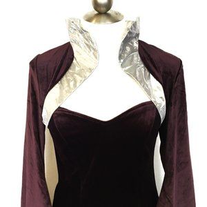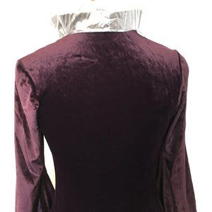 Long Plum Stretchy Velvet Dress with wide Silver Metallic Trim
