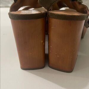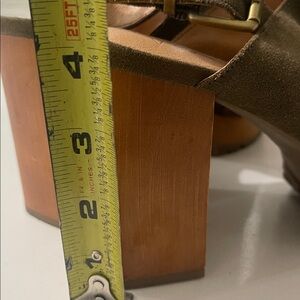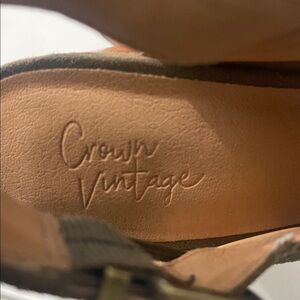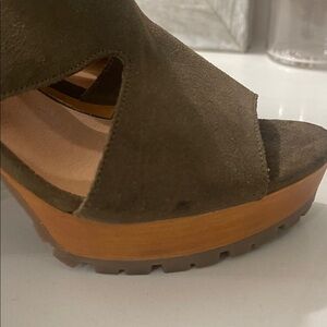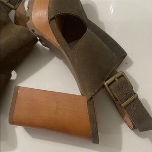 CROWN VINTAGE Olive Green Suede Platform Chunky block Heel Ankle Straps Sz 7.5