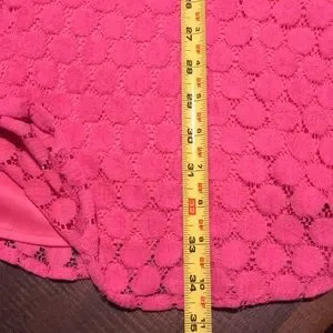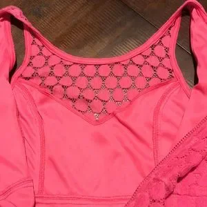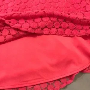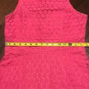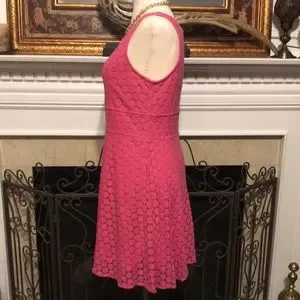 Charming Charlie fit and flare sundress. Tank style straps. Pretty, all-over circular crochet design. Fully lined except for the neckline. Very light pilling in a few places and slight lightening under the arms. Light wash wear. Please look at all pictures for condition. Very soft and comfortable! Color is hot pink.