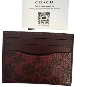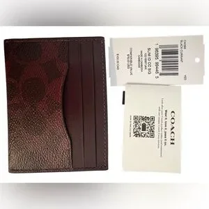 Sleek and stylish Coach card holder in a rich black current Perfect for organizing your essentials with elegance. Coach Black currant slim ID CC Card Holder NWT