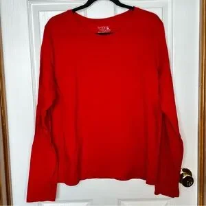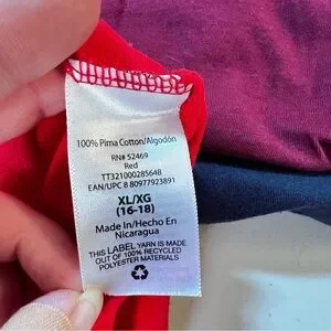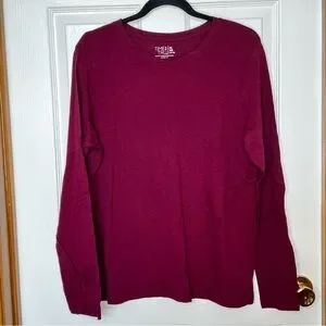 Great everyday basics in this lot of three long sleeve scoop neck tops by Time and Tru. Includes one red, one maroon, and one navy blue top — perfect staple pieces for layering or casual everyday wear.