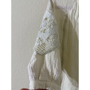 Soft Surroundings Magnolia Gauze Ivory Crocheted Trim Blouse Size Medium Boho