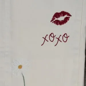 -Features: Embroidered hearts, roses, florals, LOVE/XOXO/lips accents; 5-pocket style