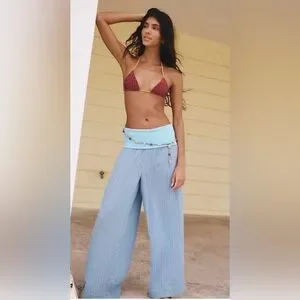 Features: Folded waistband for adjustable fit, yarn-dyed striped fabrication, pull-on design Why We It: Effortless over swimwear or layered with cozy pieces, this pair has endless ways to wear.