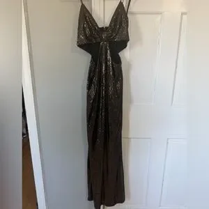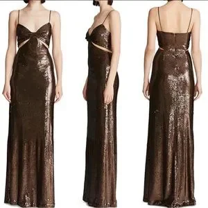 Halston Heritage brown death sequin gown