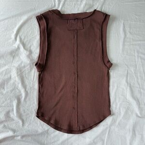 We The Free tank top, Free People tank, Free People ribbed tank, brown ribbed tank, brown sleeveless top, cotton spandex tank, raw hem tank, curved hem tank top, Free People basic, Free People medium top, casual tank, layering tank, minimalist tank top, muscle tank.