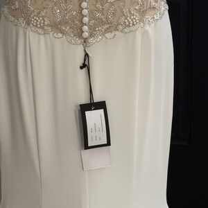 Justin Alexander Wedding Dress Ivory Sheath Low Back Lace NWT Designer Gown