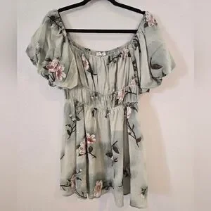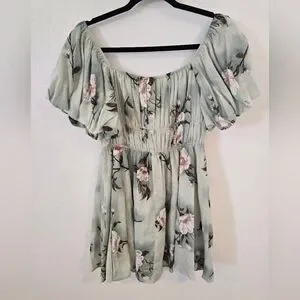 HYFVE Sage Floral Magnolia Puff Sleeve Mini Dress Garden Party Size Large