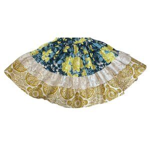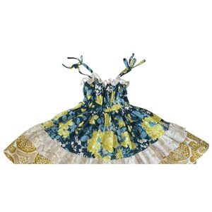 Magpie & Mabel Girls Floral Tiered Sundress 6 Blue Yellow Lace Trim Tie Straps