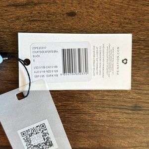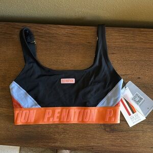 Courtside sports bra Black, orange and blue. Made from recycled material. Australian brand. Size small.