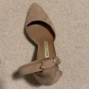 Manolo Blahnik Lausam Suede Block Heel Ankle Strap Shoes