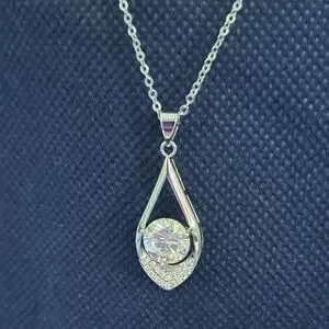 NWT Teardrop MOSSINITE necklace 16-18" chain. 3CT teardrop necklace D color. White Gold plated.