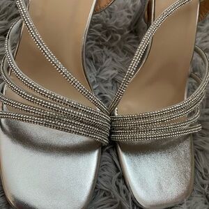metallic silver heels
