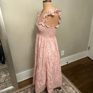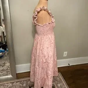 Dearest gentle readers, this Ellie Nap Dress is from the Hill House Home Bridgerton collaboration a few years back. Size XS. Elegant blush dress with smocked detailing. Comfortable and charming. Please note the condition of the smocking, I don’t think it’s noticeable when wearing, but it does have a few puckers. Additionally photos available upon request. Perfect for any occasion. Cat friendly nonsmoking home.