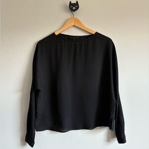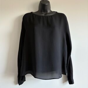 Add a touch of effortless luxury to your wardrobe with this stunning Nili Lotan silk blouse. Featuring a modern, relaxed silhouette and a chic boat neckline, this piece transitions perfectly from the office to dinner. The lightweight, 100% silk fabric has a beautiful drape and a subtle sheer panel at the hem for added dimension.