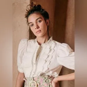 Rendered in a warm ecru (soft ivory) shade, the blouse is designed to feel both refined and effortless, perfect tucked into denim or paired with skirts for an understated romantic look.