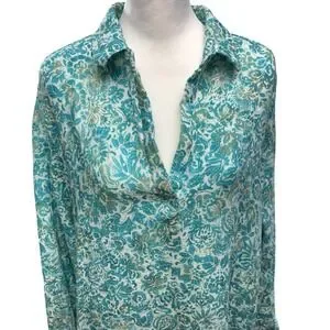 Rip Skirt Hawaii Travel Long Midi Dress Size XL Al Mare Cotton Gauze Roll Sleeve Very good pre-owned condition, no holes, stains, fading, or piling.