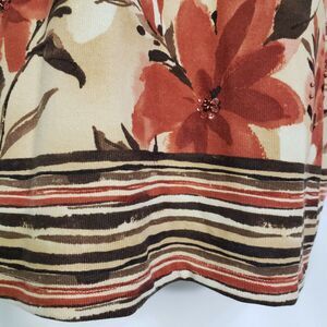 Alfred Dunner Womens Top Small Floral 3/4 Sleeve Embellished Striped Split V Nec