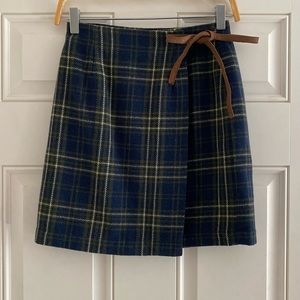 Vintage 90s GAP Mini Skirt Wrap Tie Front Wool Plaid Blue Green Fairy Whimsigoth