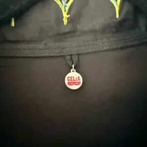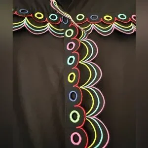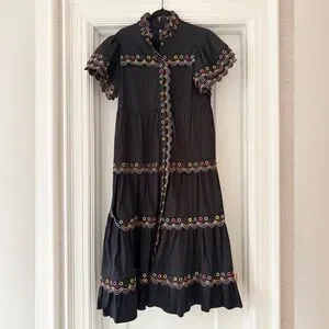 Chic Malik black midi dress by CeliaB. Features vibrant multicolor trim. Ideal for stylish outings or tropical vacations.