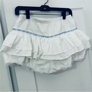 NWOT - White Ruffled Pumpkin Bloomers Skirt with Blue Ribbon Accent - S
