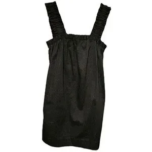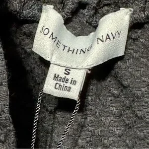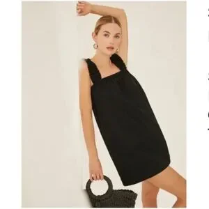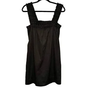 Something Navy Black Square Neck Shirred Ruffled Sleeve Textured Mini Dress