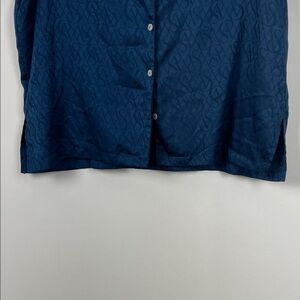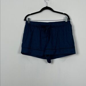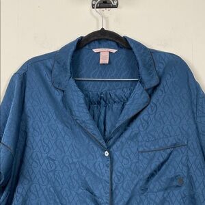 Victoria's Secret Satin 2 PC Short Pajama Set Women L Navy Blue Allover VS Logo
