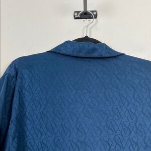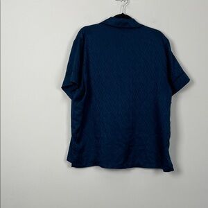 Style Profile: Stylish navy blue short sleeve button-up shirt with matching shorts . Features a classic collar and front pocket.