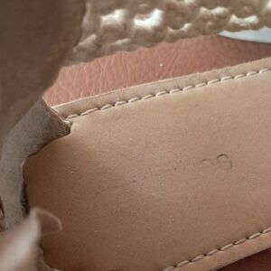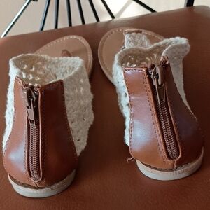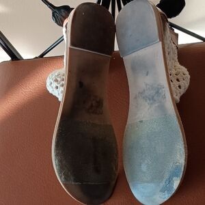 Step into style with these elegant cream crochet sandals. Perfect for any casual outing. The size is worn off, but if you compare the inner measurement shown to the international sizing chart shown, you'll see that these shoes are equivalent to a women's size 6 US! The bottom soles show some wear on the right shoe on the side of the right toes. See photos. And lastly, I think these are Maurices brand, but most of the brand name has worn away. Price reflects condition.