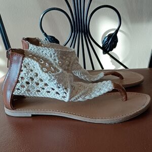 Women's Cream Crochet Thong Sandals, Sz 6 US