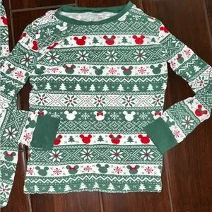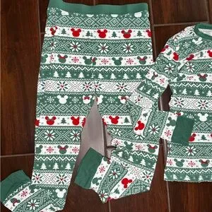 The Little Sleepies Disney Fair Isle Mickey Christmas Pajamas in size 7/8 are a festive and cozy option for unisex kids during the winter and fall seasons. Made from a viscose and bamboo blend, this 2-piece pajama set features a Fair Isle pattern with Mickey Mouse character details, perfect for celebrating the holiday season. With long sleeves and a multicolor design, these pajamas are both stylish and comfortable for a good night's sleep. Good Preowned condition. Some mild signs of wear.