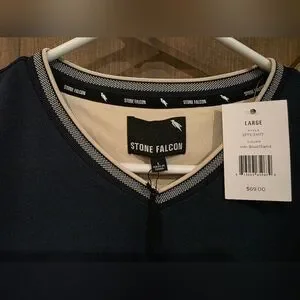 STONE FALCON Ink Blue/Sand V-neck Tee- Size LARGE