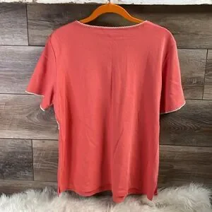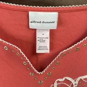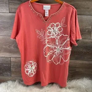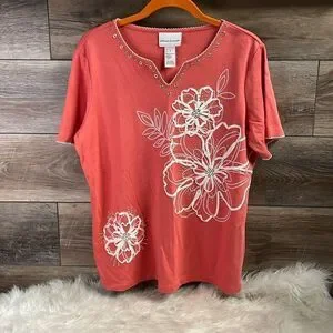 Alfred Dunner Ladies Embellished Floral Top, Size M, Coral and White