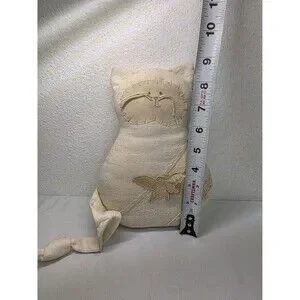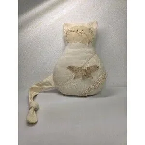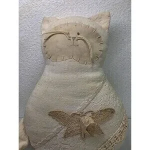 Vintage Handmade Fabric Cat Plush, Shabby Chic Lace Kitty Doll, Cottagecore Decor, Cream Cloth Stuffed Cat, Rustic Farmhouse Shelf Accent