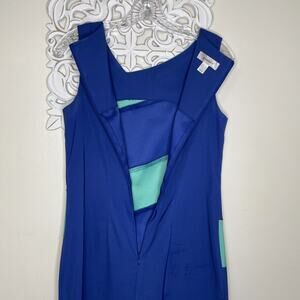 DRESSBARN Women's size 6 Sheath DRESS Sleeveless Stretch Color Block BLUE GREEN