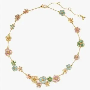 Elegant floral necklace featuring gold with multicolor accents. Perfect for adding a touch of sophistication to any outfit. Sold out online.