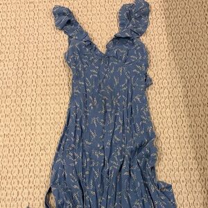 Charming blue dress with floral print and ruffle details. Perfect for any occasion.