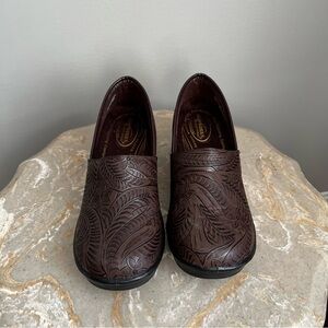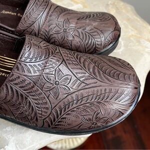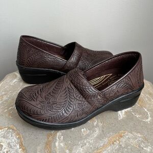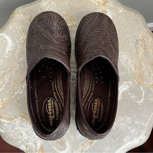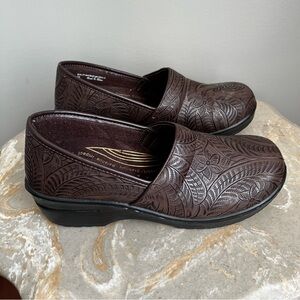 Easy Works Lyndee Women’s 9 Clog Brown Slip Resistant Work Shoe Floral Design