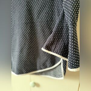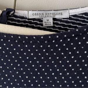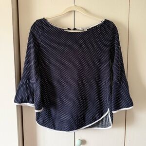 Green Envelope Navy and White Polka Dot Top w 3/4 Bell Sleeves Size M