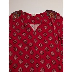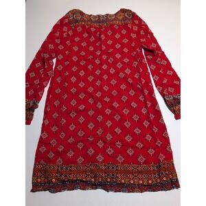 Charlotte Russe Red Medallion Print Boho Shift Dress Long Sleeve Womens L